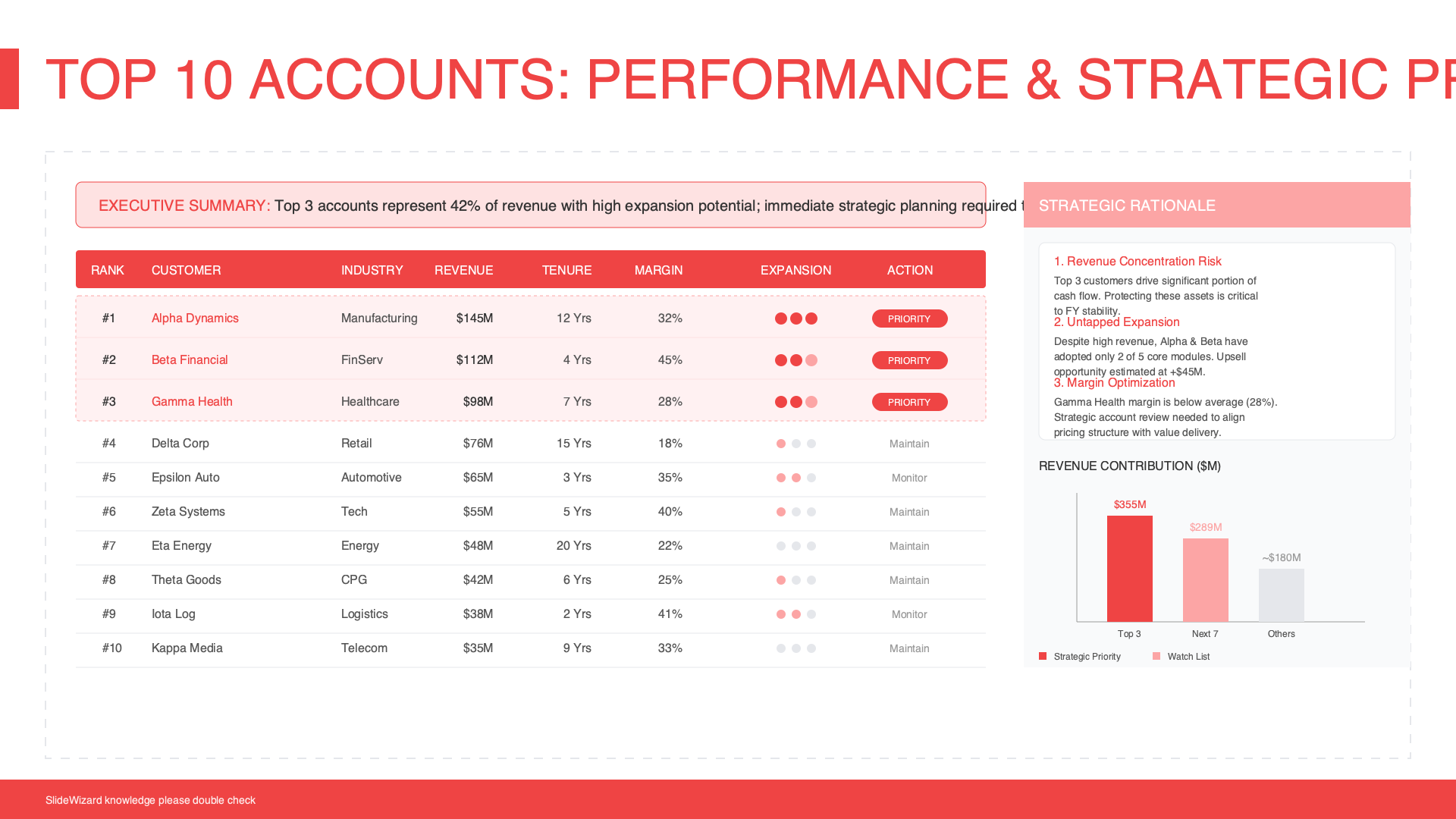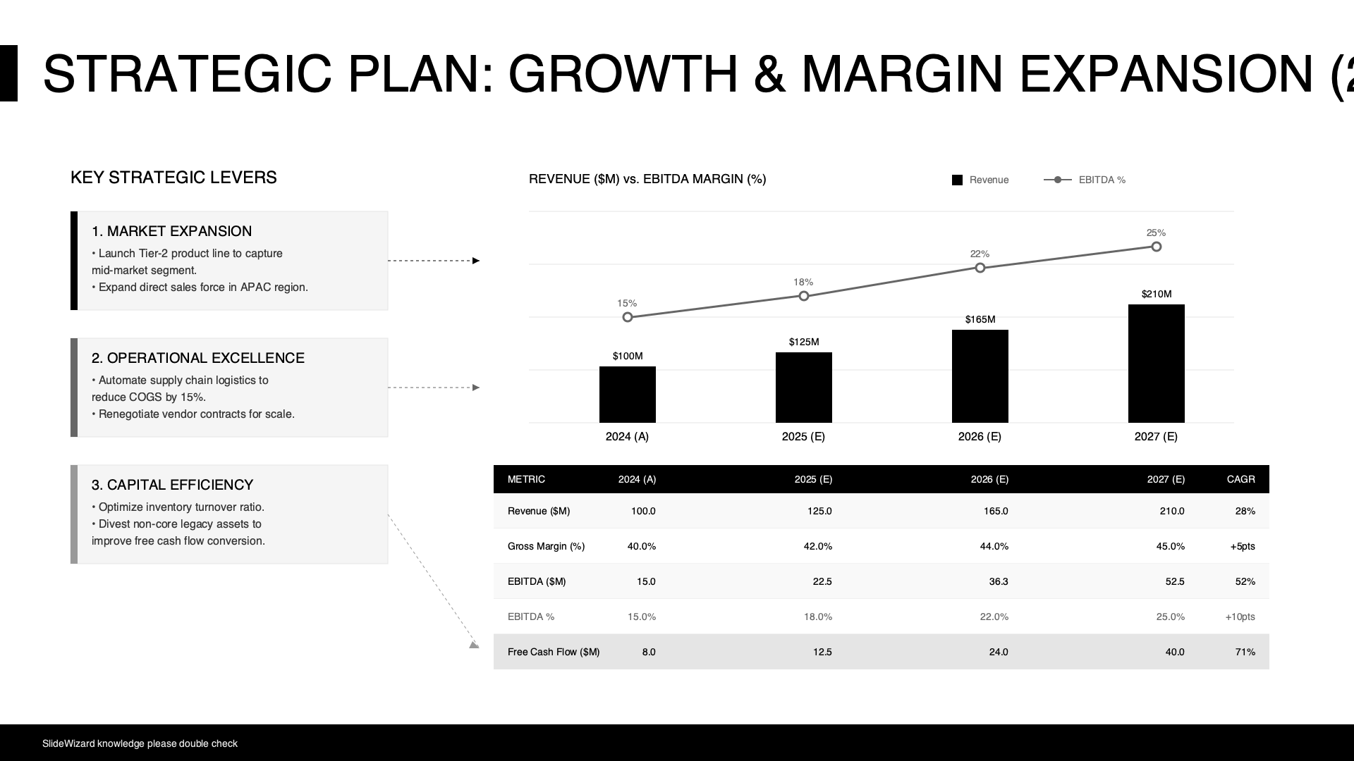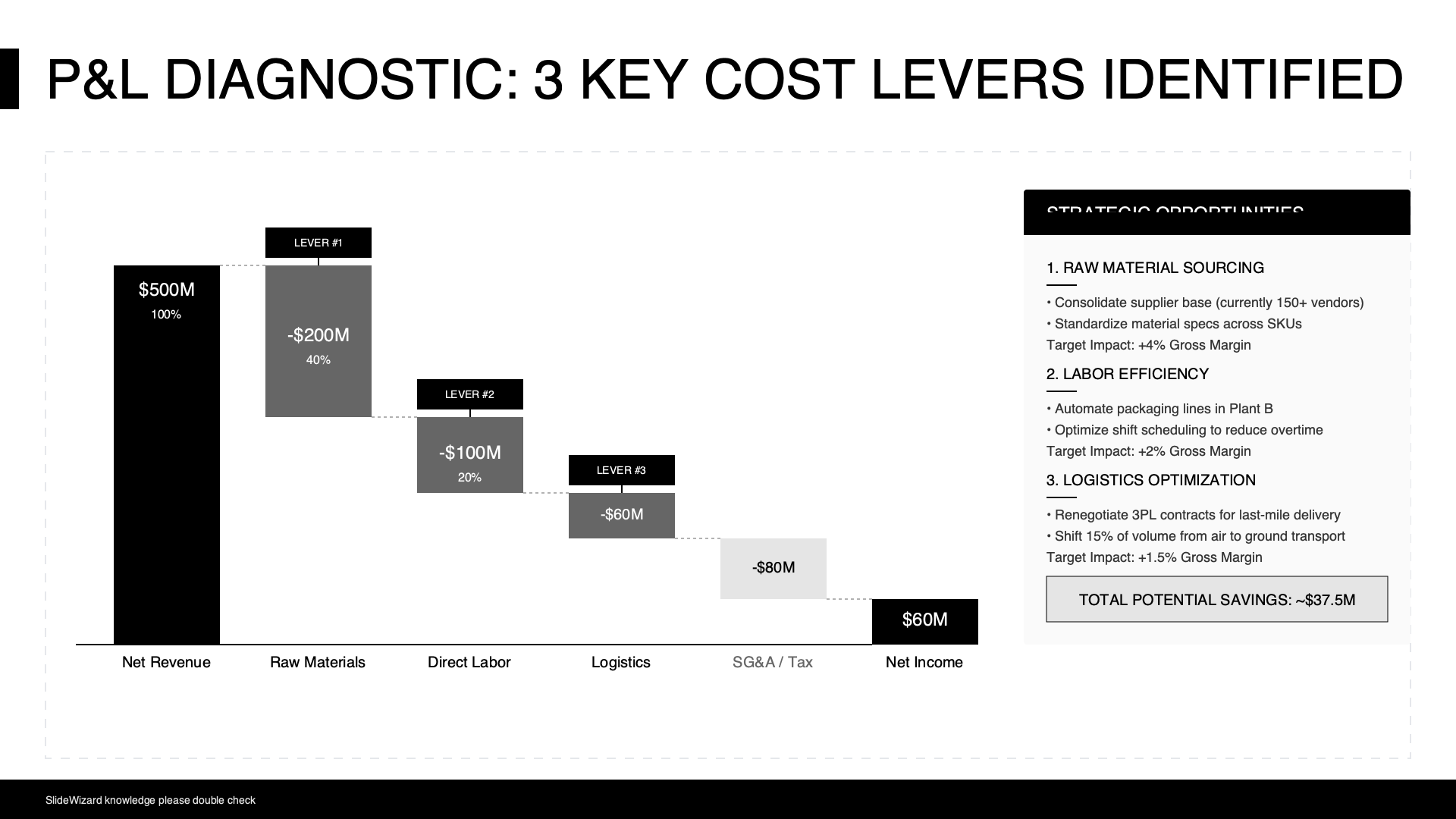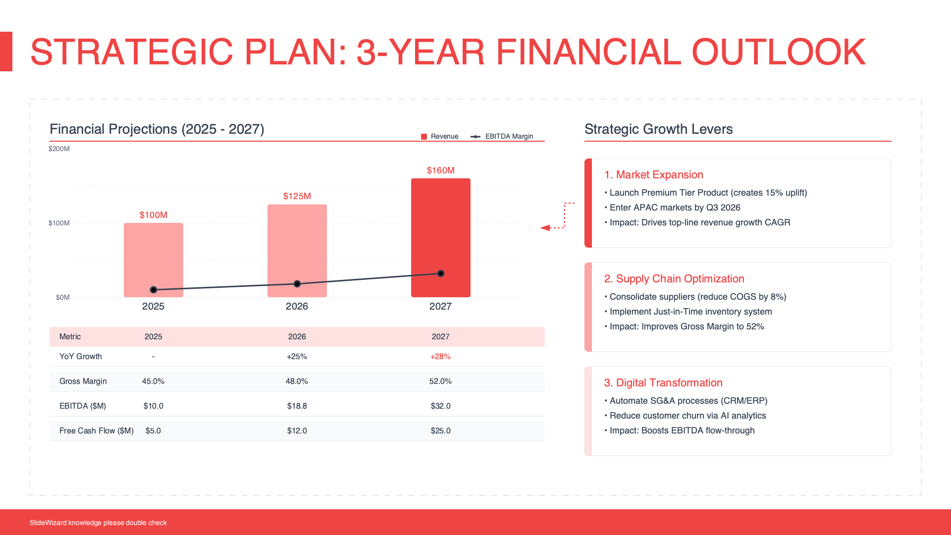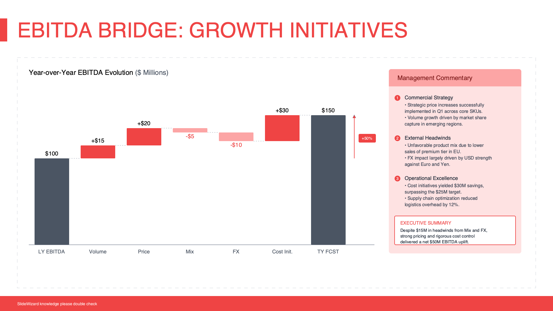 "Prepare a single slide that decomposes our revenue growth over the last 3 years into volume, price, and mix effects, and clearly highlights the top 3 drivers management should care about."