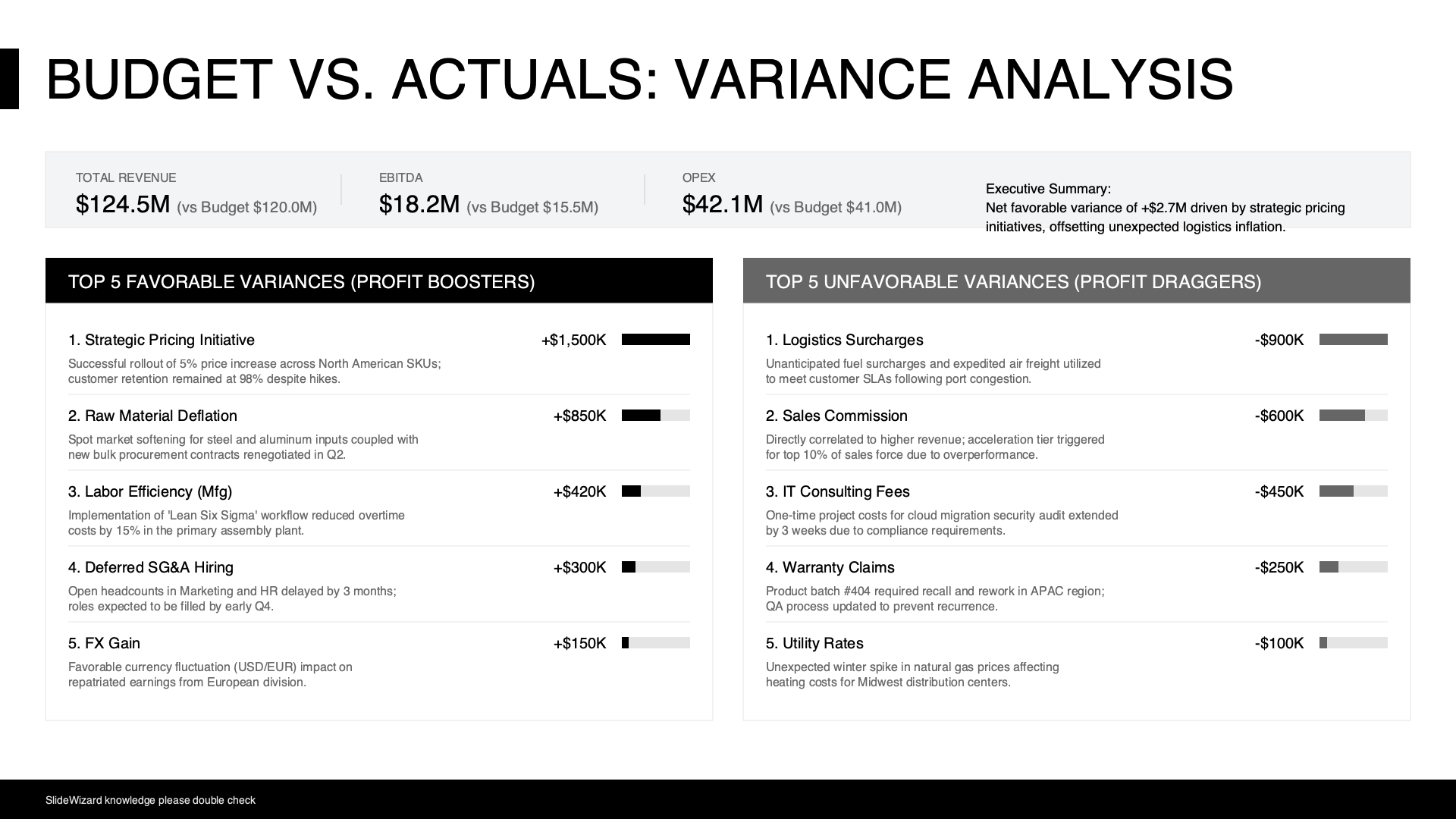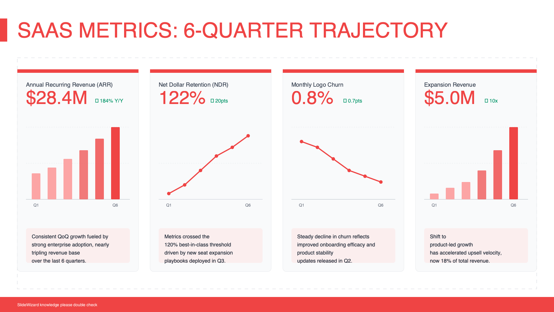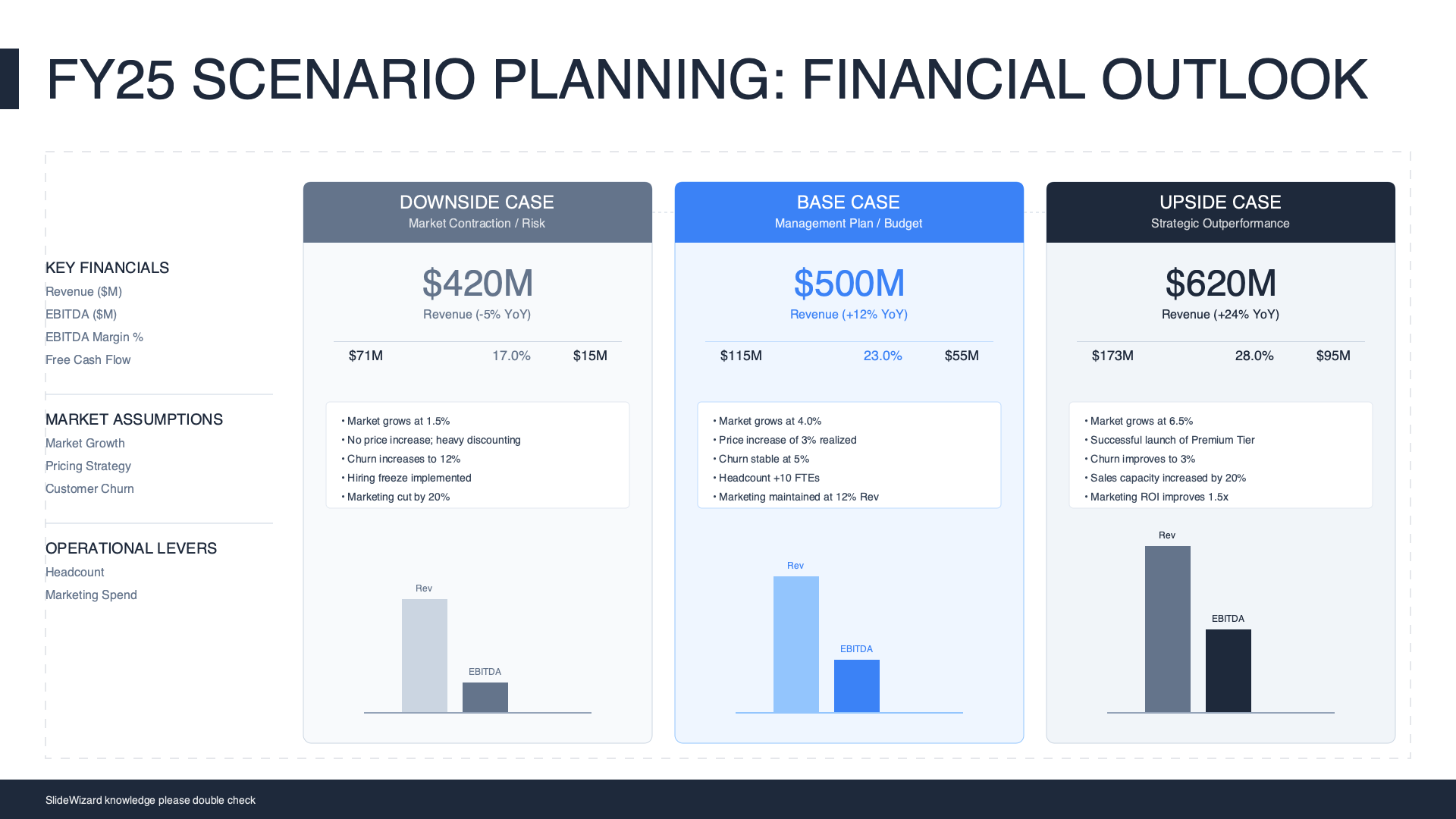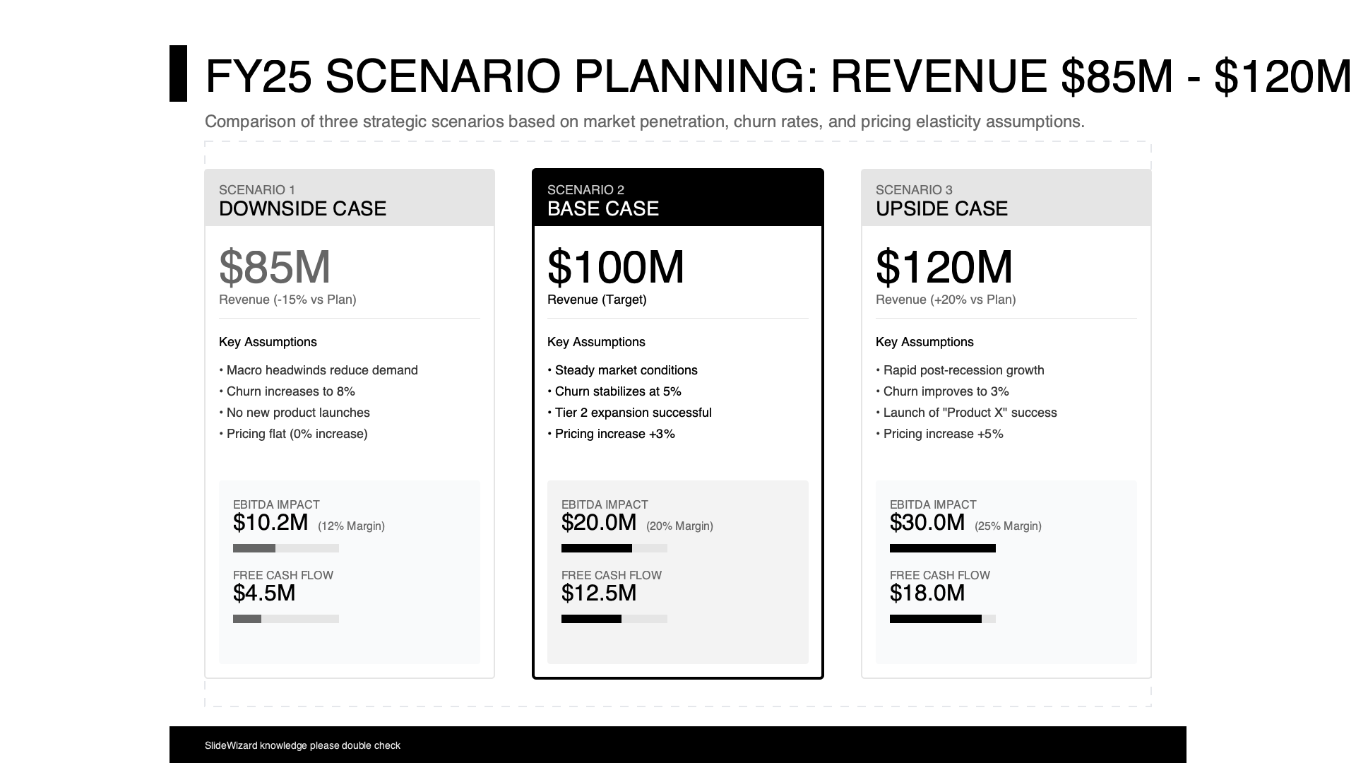 One prompt, endless possibilities. See how SlideWizard transforms text into diverse professional layouts.