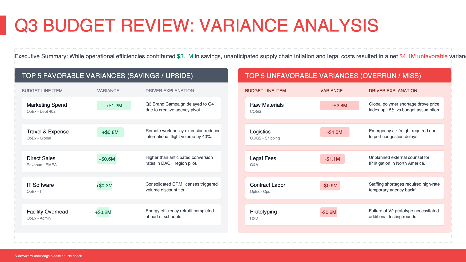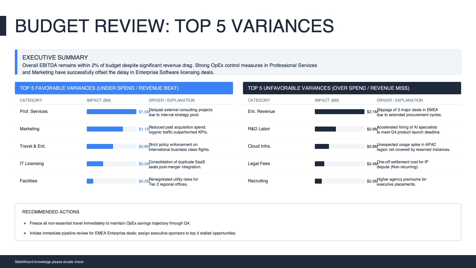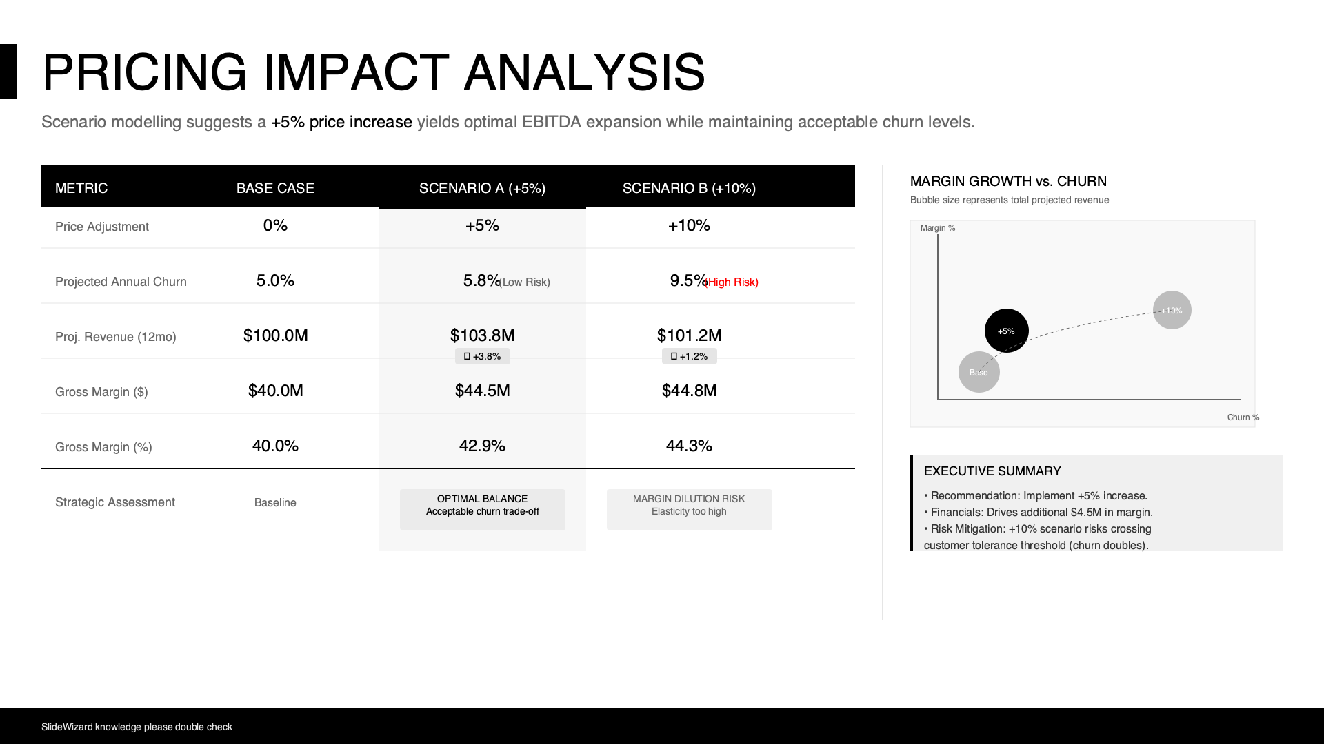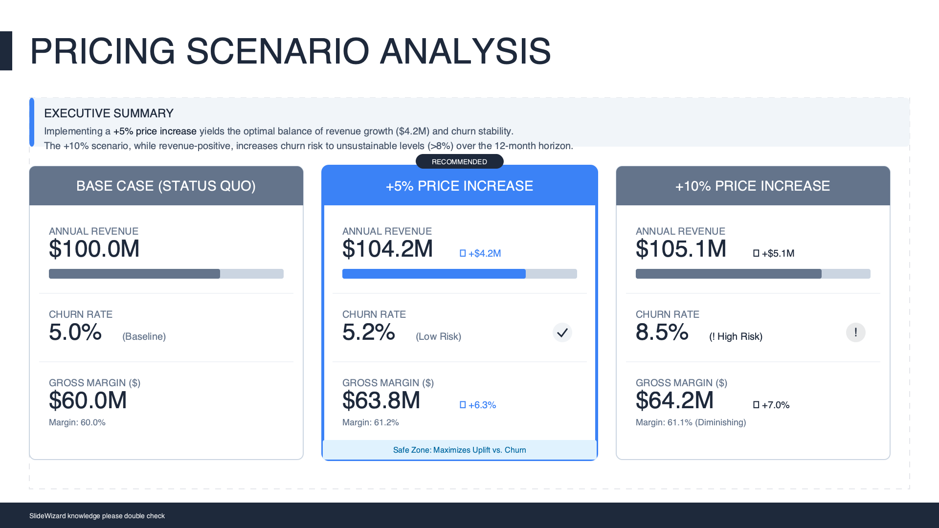 One prompt, endless possibilities. See how SlideWizard transforms text into diverse professional layouts.